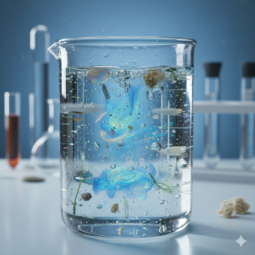 Seawater is a complex solution dominated by dissolved salts, gases, nutrients, trace metals, and organic compounds. Despite geographical variation in salinity, the relative proportions of major ions remain remarkably constant worldwide, a concept known as the Principle of Constant Proportions. The majority of seawater salinity is contributed by chloride, sodium, sulfate, magnesium, calcium, and potassium.